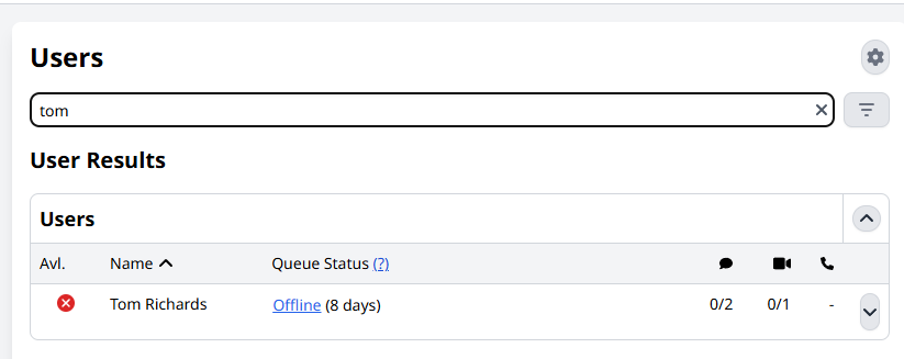- Click the right side arrow to drop down a list of Users on the All Users or relevant Queue section