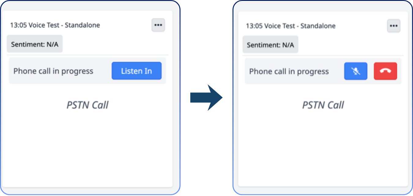 Once you are listening in, you can click the microphone button to join in the call, or hang up, to leave the call. Keep in mind that the agent handling the call will still be within the call.